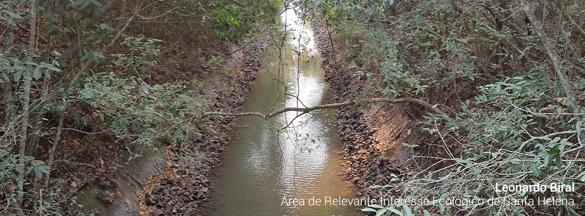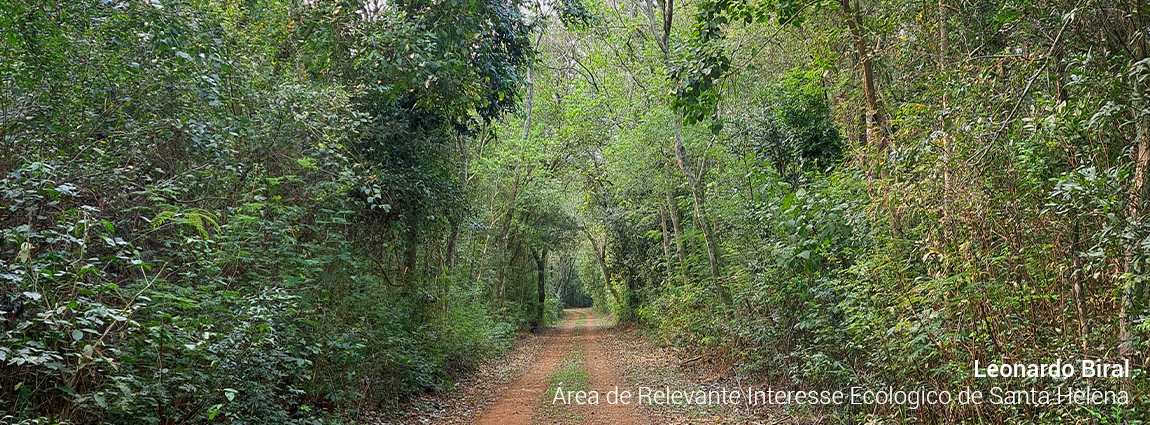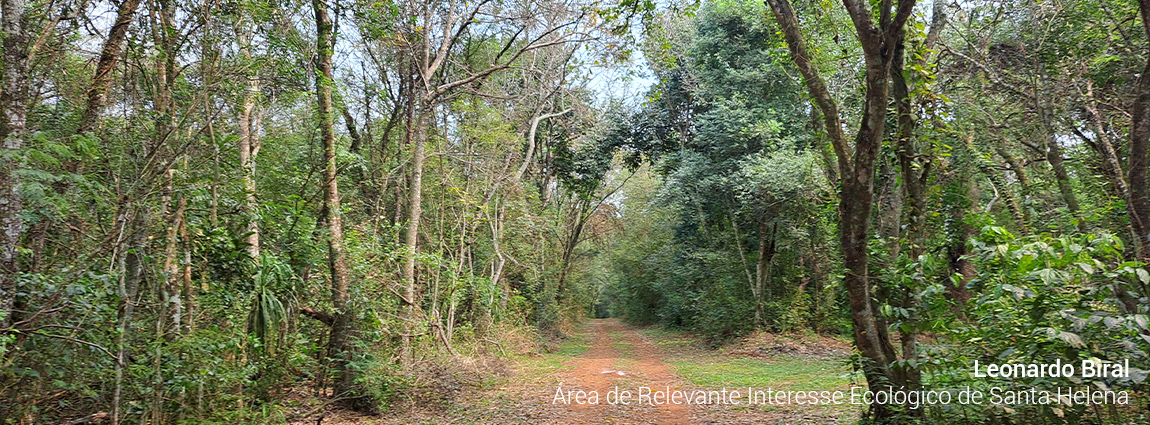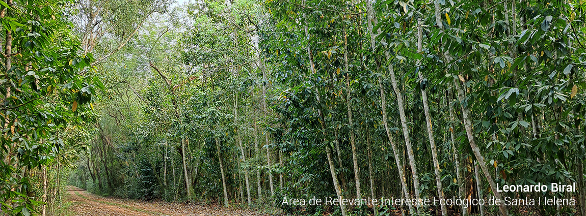 A Área de Relevante Interesse Ecológico de Santa Helena (ARIE-SH) está localizada no oeste do Paraná, no município de Santa Helena, às margens do Rio Paraná na fronteira com o Paraguai. A Unidade de Conservação (UC) foi criada pela Itaipu Binacional como Refúgio Biológico em 1984 (RED nº 50/1984). O objetivo inicial da criação da UC foi servir como área de apoio para a operação Mymba Kuera, de resgate de animais durante a subida do nível do Rio Paraná em decorrência do seu represamento para a formação do reservatório da Usina de Itaipu. Antes do represamento, o local onde se situa a ARIE-SH era habitado por moradores locais, cujas propriedades foram desapropriadas e estes indenizados. Em 1988, durante a elaboração do primeiro plano de manejo, a UC foi recategorizada para ARIE. A ARIE-SH possui 1482 ha e um formato semelhante a uma península que adentra as águas do Reservatório de Itaipu, sendo separada do resto do município de Santa Helena por meio de um canal artificial escavado para isolar a biota local, dificultar o acesso de pessoas e a fuga de animais. Desse modo, atualmente a ARIE-SH apresenta-se como uma ilha artificial. A UC está inserida no Corredor Iguaçu-Ilha Grande, que visa conectar os fragmentos de vegetação entre os Parque Nacionais do Iguaçu e da Ilha Grande, e liga toda a costa oeste do estado que margeia o Reservatório de Itaipu. Toda a área onde está localizada a UC está assentada em Nitossolo Vermelho na Unidade Geomorfológica dos Planaltos Rebaixados do Rio Paraná, subprovíncia da Serra Geral. O clima da região é subtropical úmido mesotérmico, com verões quentes e úmidos e invernos secos e com temperaturas amenas, com ocorrência eventual de geada. A pluviosidade média anual é de 1650 mm. A ARIE-SH possui uma vegetação do tipo floresta estacional semidecidual, altitude entre 230 e 250 m, e coordenada central em 24º49’17,85”S, 54º21’21,53”W. Após a desapropriação, o local foi restaurado pela Itaipu com o plantio 200 talhões homogêneos (100 m x 50 m) utilizando 24 espécies arbóreas nativas e 18 exóticas. Pelo histórico recente de ocupação local e pelo reflorestamento com plantios homogêneos e uso de espécies exóticas, a ARIE-SH possui diversos pontos com vegetação secundária e ainda em processo de regeneração. A ARIE-SH foi alvo de coletas pontuais no final dos anos 1980 e início dos anos 1990. Depois de 1991 o local não foi mais alvo de estudos botânicos por mais de 25 anos. Foi somente a partir de 2017, com a implantação do câmpus Santa Helena da Universidade Tecnológica Federal do Paraná, que a ARIE-SH voltou a ser explorada por meio de coletas botânicas. Entre 2017 e 2023, a ARIE-SH foi alvo de coletas botânicas por Leonardo Biral, sendo que essas formaram a base do acervo do herbário SHPR, fundado em 2019. Até o momento, estão catalogadas por meio de coletas tombadas em herbários 215 espécies de plantas vasculares, sendo 194 angiospermas e 21 samambaias, distribuídas em 69 famílias botânicas. Dessas 215 espécies, 185 não são mencionadas no plano de manejo vigente, de 2010, evidenciando a importância de atualizações periódicas dos planos de manejos de UCs.
